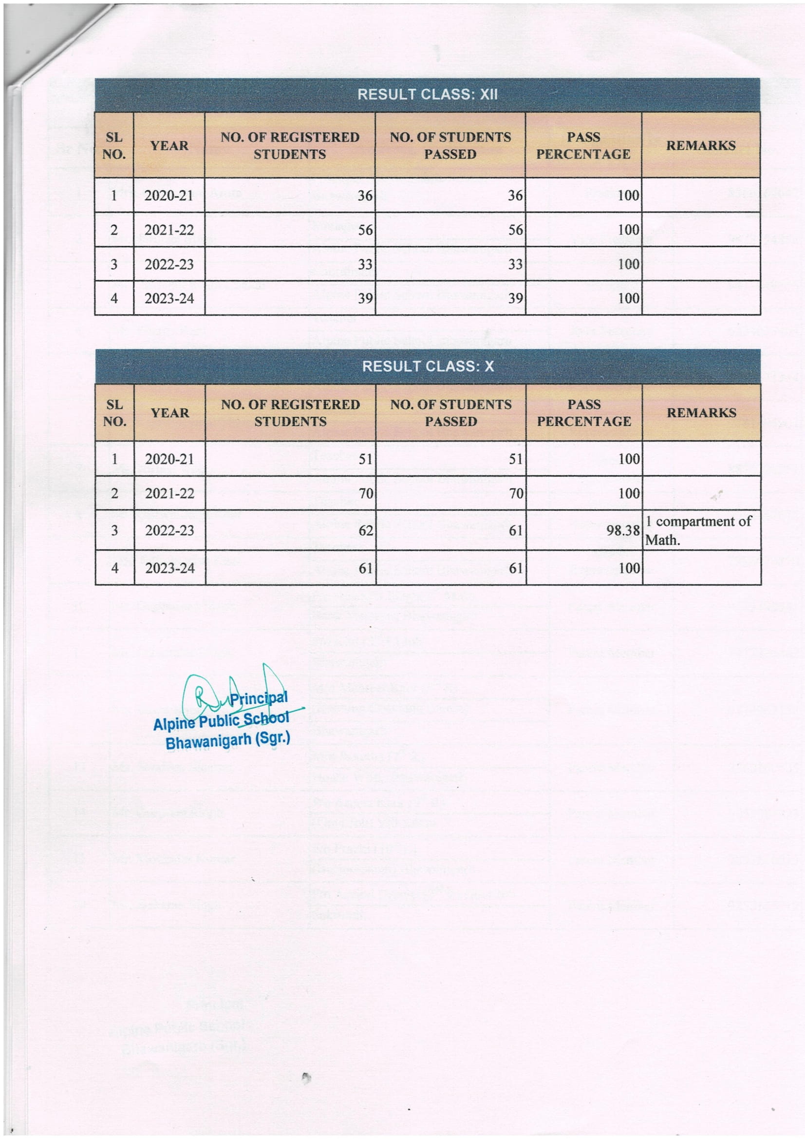 Result of X and XII Class