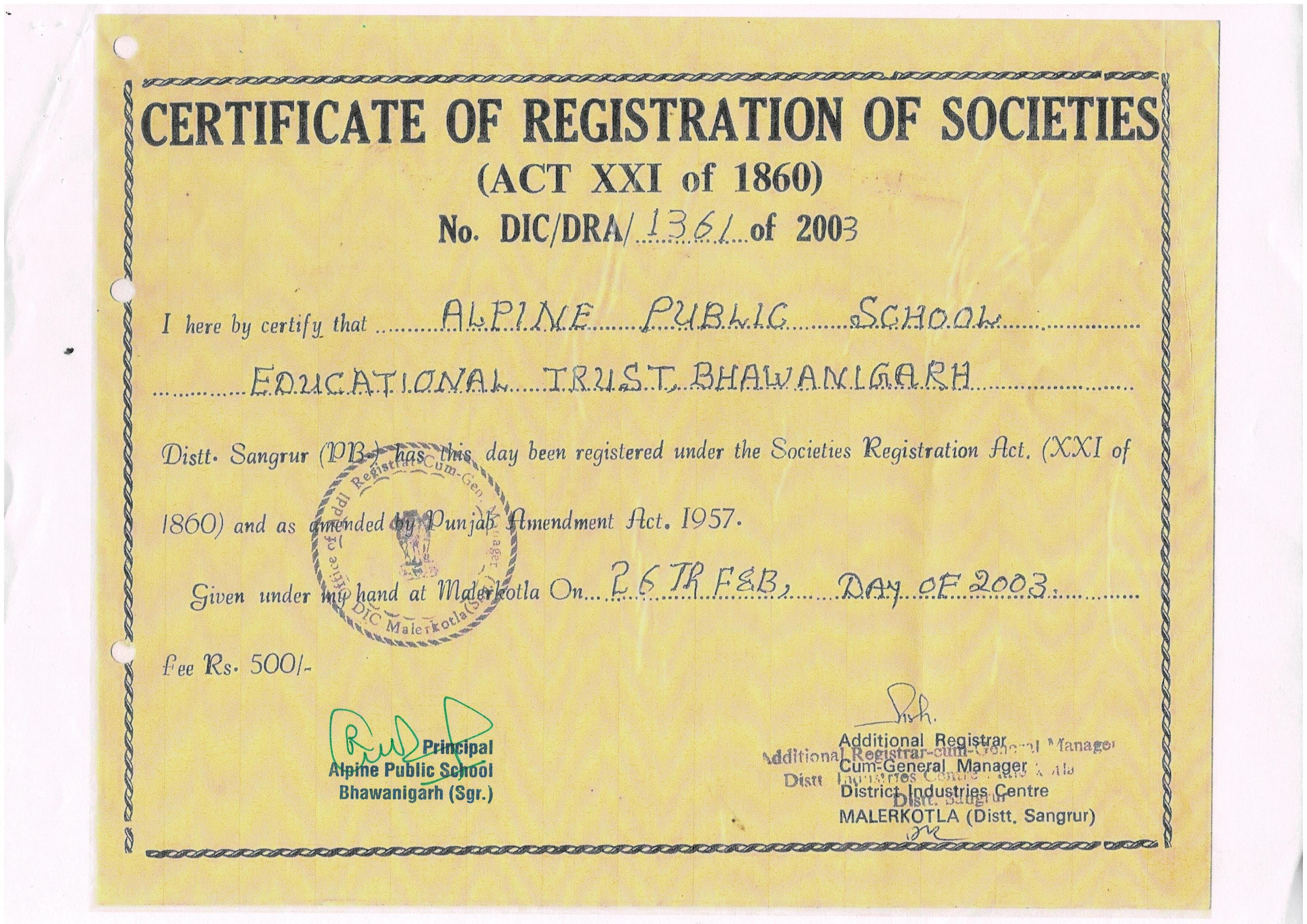 View or download official documents and certificates of Alpine Public School.